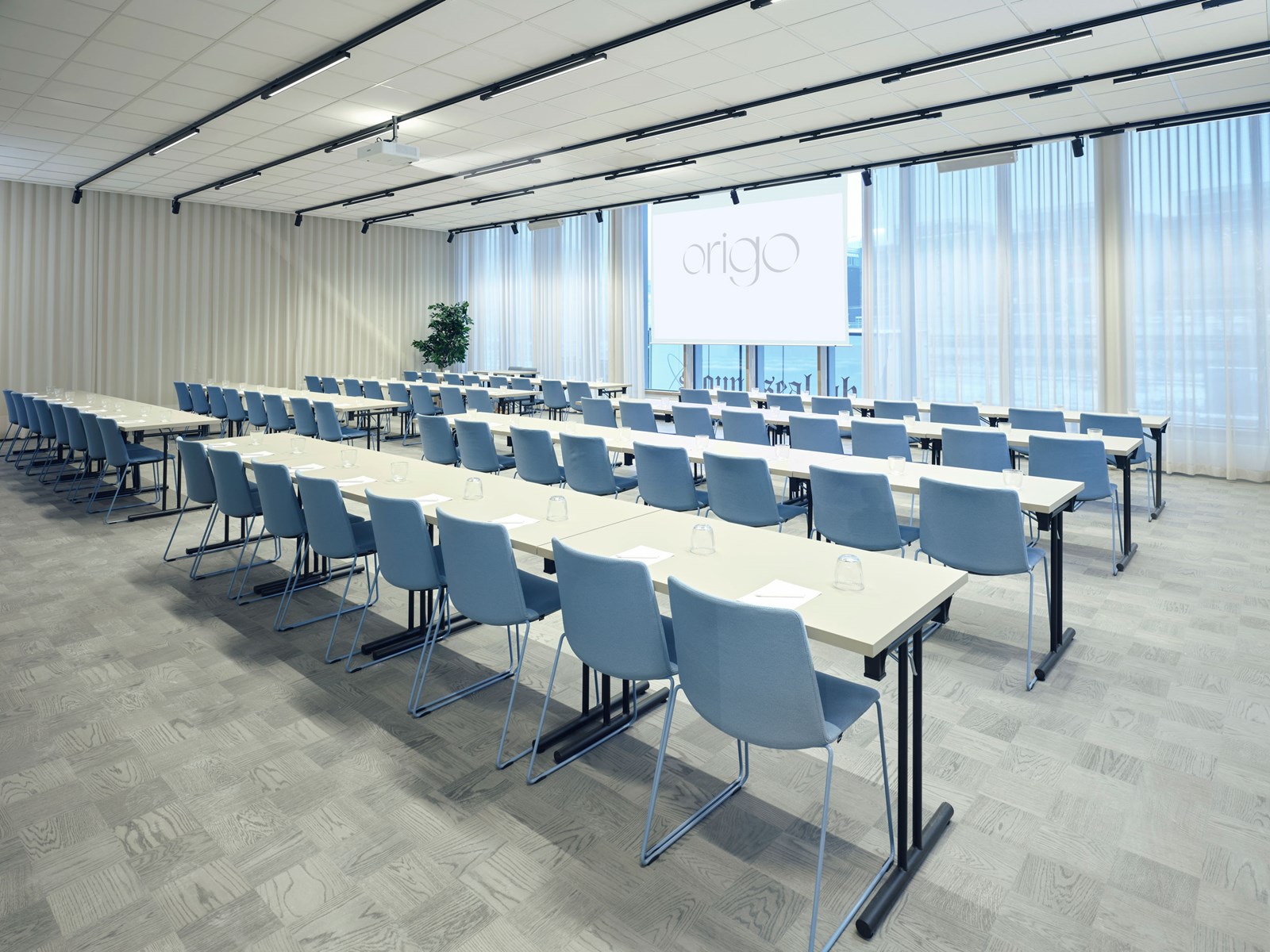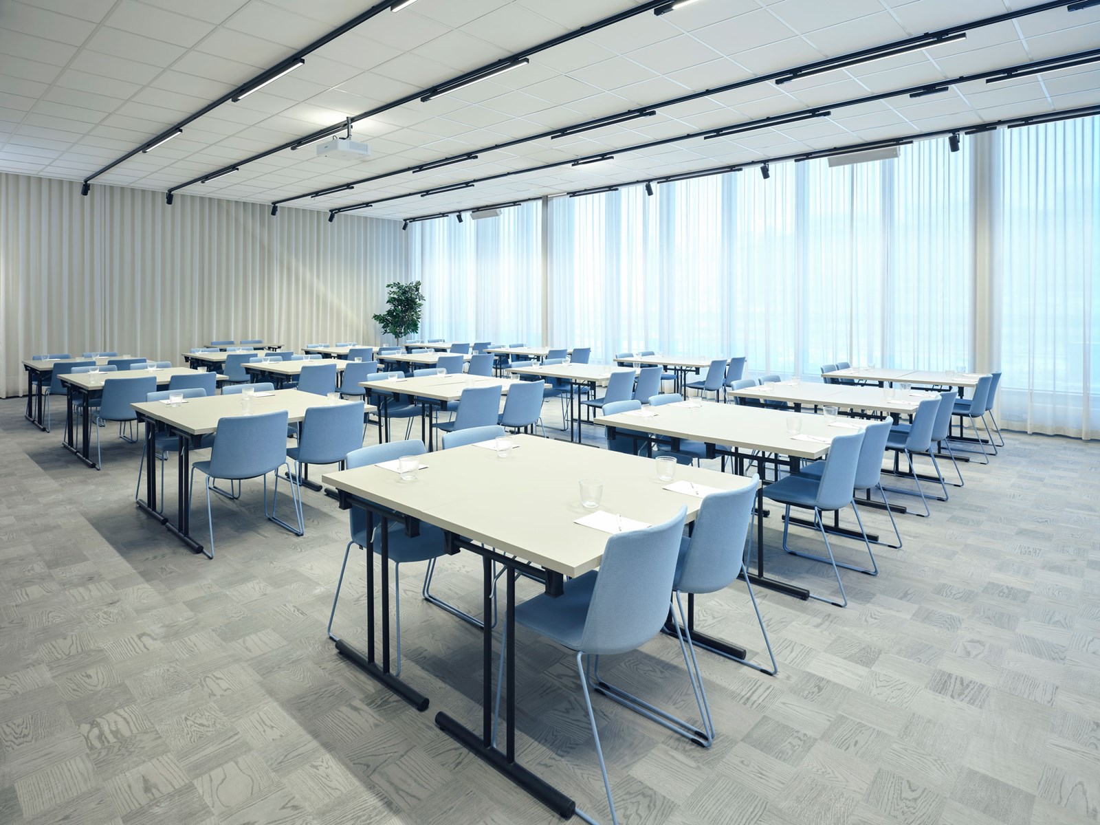 Vår största konferenslokal har flexibel möblering och rymmer 100 personer.