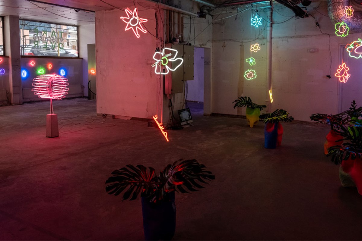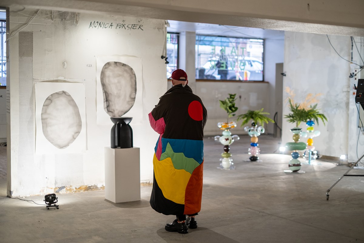 – Sedan i januari har jag fördelat lokalen i två partier. Till att börja med den offentliga utställningsplatsen, som är synlig från fönstren mot gatan. Där har jag bjudit in olika konstnärer att ta mer plats. Soloutställningar med kvinnliga konstnärer är alltför ovanliga, här har vi möjlighet att visa framför allt kvinnor, icke-binära och icke-vita konstnärer, på en strategisk plats i innerstan där människor med makt rör sig. Mitt samarbete med Humlegården möjliggör det. Den andra delen av lokalen, som vi kallar ”backstage”, är en plats där konstnärer kan arbeta gratis. Här visar vi också verk från de utställningar vi haft hittills, och säljer dem direkt från konstnärerna till publiken utan kommission.