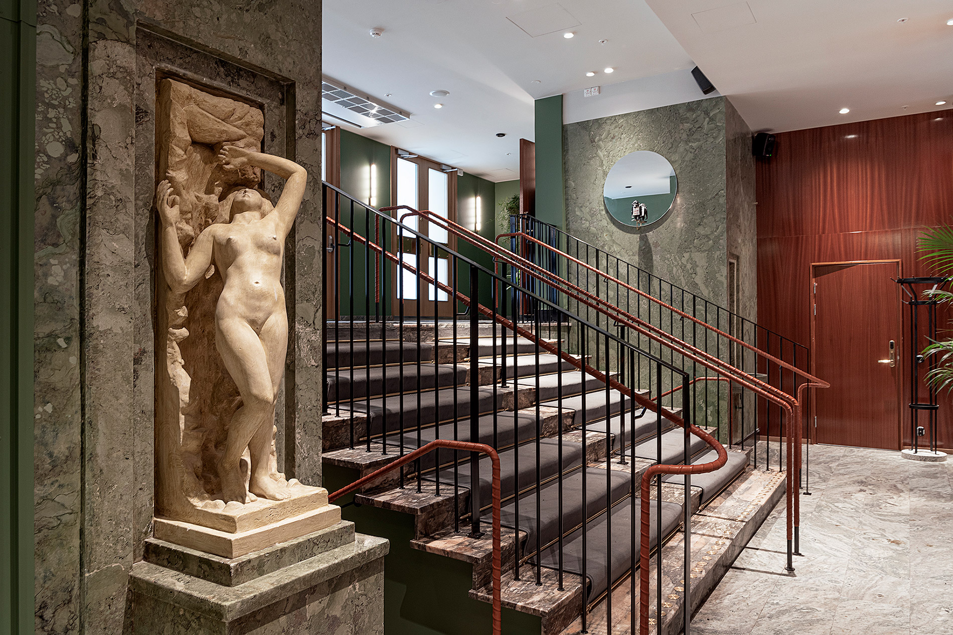Det är en ambition man känner av i lokalen. Gamla biograf Astorias k-märkta entré från 1928 har renoverats och bevarats, inklusive den abstrakta väggmålningen av Olle Hagdahl. Där den före detta biosalongen låg finns nu en stor bar, med inbjudande sittgrupper där man kan slinka in spontant för en drink och en matbit från barmenyn. I stora kylskåp längs väggen kan man spana in delar av den omfattande vinkällaren.