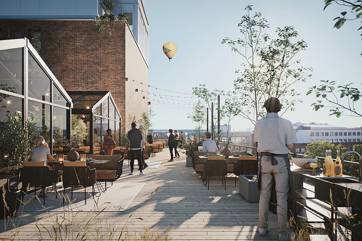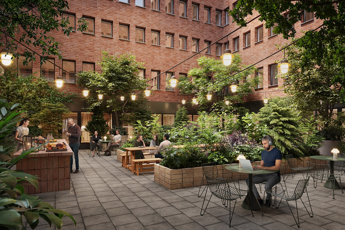 – Namnet Greenhouse Solna strand tar utgångspunkt i att vi vill skapa en plats där både människor och företag kan växa. Vi har ett stort fokus på hållbarhet och grönskan spelar en viktig roll på platsen, både inomhus och utomhus. Tillsammans med den karaktäristiska tegelarkitekturen samt husets gröna takterrass och innergård låg liknelsen med ett växthus nära tillhands. En intressant detalj i sammanhanget är även att många gamla kvartersnamn runtomkring kopplar till växtlighet, odling och trädgård på olika sätt, säger Anna Kullendorff.