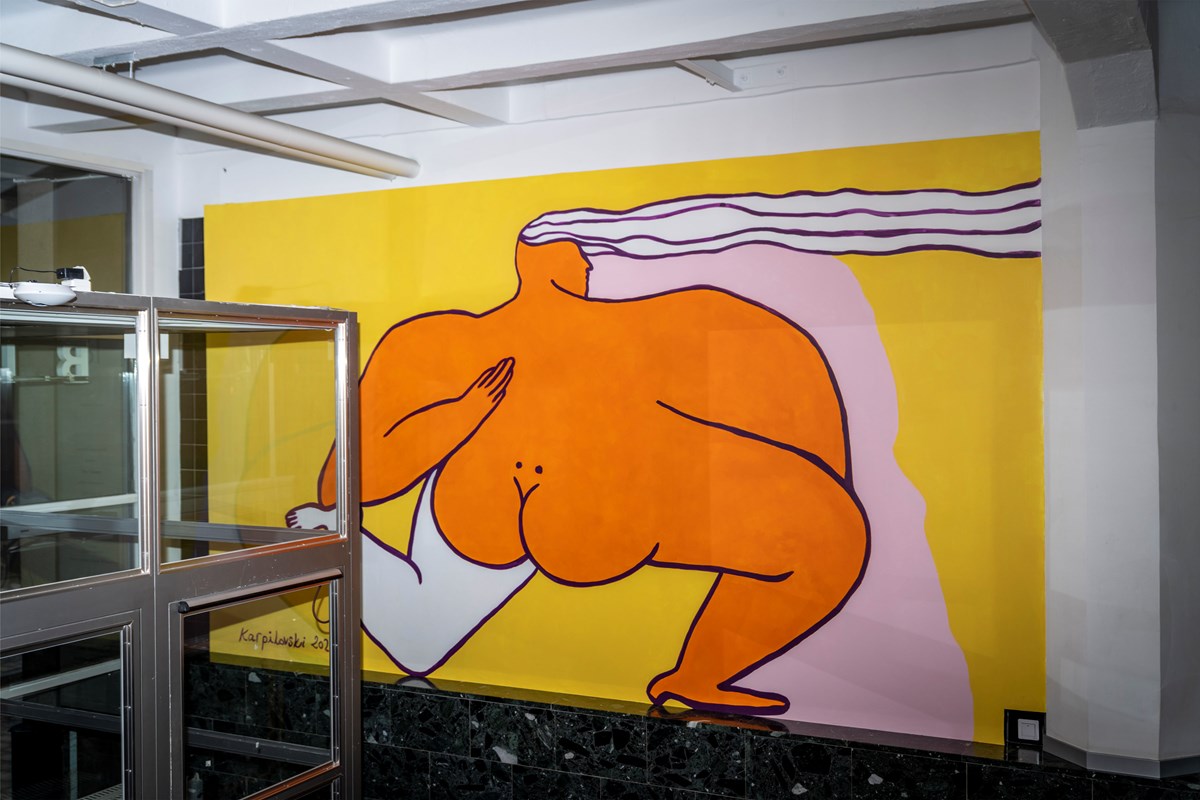 Karpilovski är en av konstnärerna och formgivarna i design- och konstplattformen Misschiefs, som arbetar i lokaler högre upp i huset. Samarbetet mellan Misschiefs och Humlegården inleddes redan 2020, när Misschiefs tillfälligt fick ta över en stor lokal i ett före detta tvätteri på Linnégatan på Östermalm.