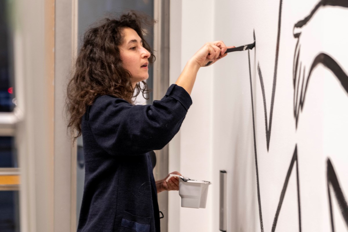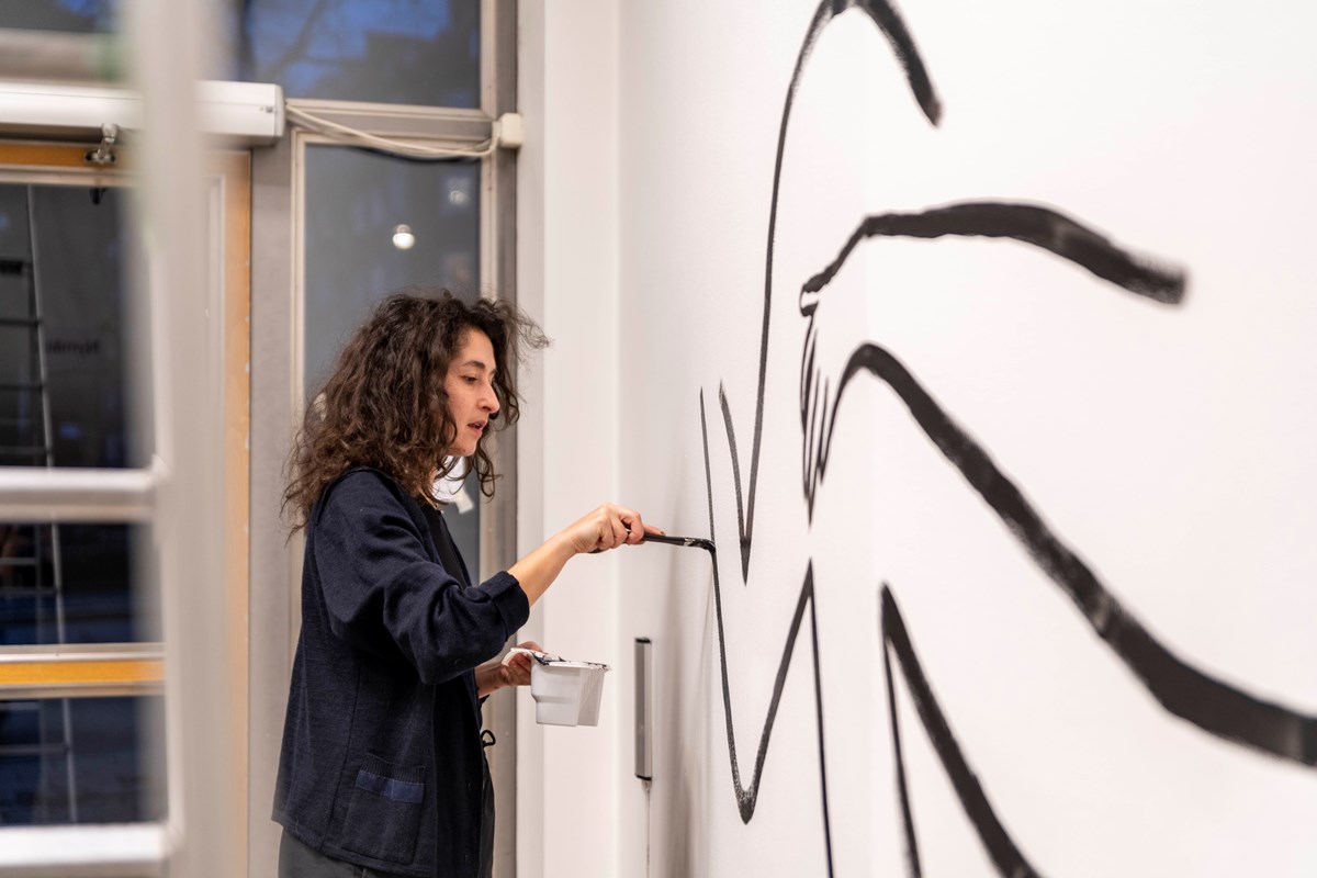– Måleri, speciellt i sådan stor skala, blir för mig en performativ akt. Inte som ett uppträdande i sig, utan mer som en historia som målas fram. I detta fall berättar figuren som får liv på väggen genom sina karaktäristiska drag och uttryck något som hänt både före och efter dess avstamp i detta nu, vad de berättar ter sig olika för alla. Precis som i mina performancer utgår jag från en stämning, vad som sedan blir beror på platsen och människorna som finns på plats, på mina egna reflektioner i stunden eller det som varit samt vad som händer runt omkring oss i detta nu. Mina performancer är mestadels textbaserade, antingen genom förinspelat material eller improviserat i stunden. Precis så var det också med dessa målningar, men i stället för text var det en bild. Målningarna är både planerade på förhand och bestämda på plats.