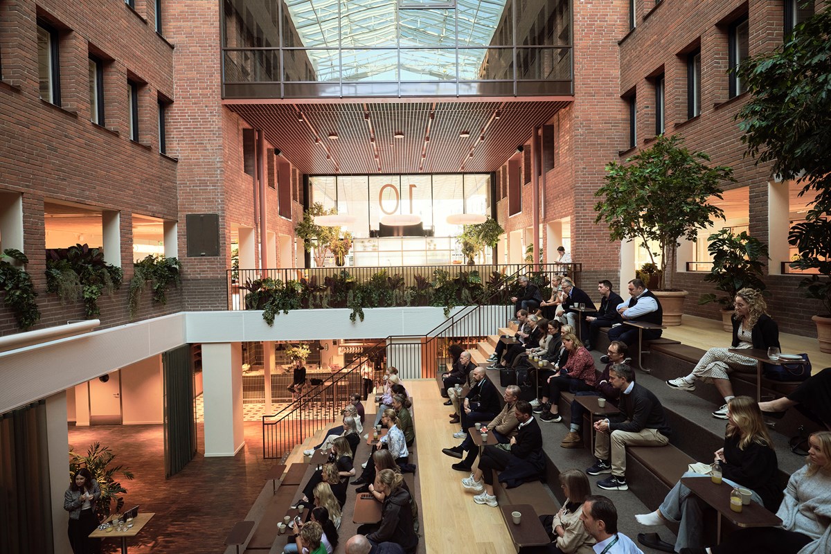 Fredrik Lantz, Humlegården Fastighets- och uthyrningschef, inledde med att berätta om tankarna bakom Greenhouse och gav publiken några tips på hur man kan tänka när man ska skapa ett nytt kontor. Han delade även några insikter från den nyligen publicerade forskningsrapporten ”Kommer du in till kontoret idag?” som fångar synen på det nya arbetslivet och framtidens arbetsplats.