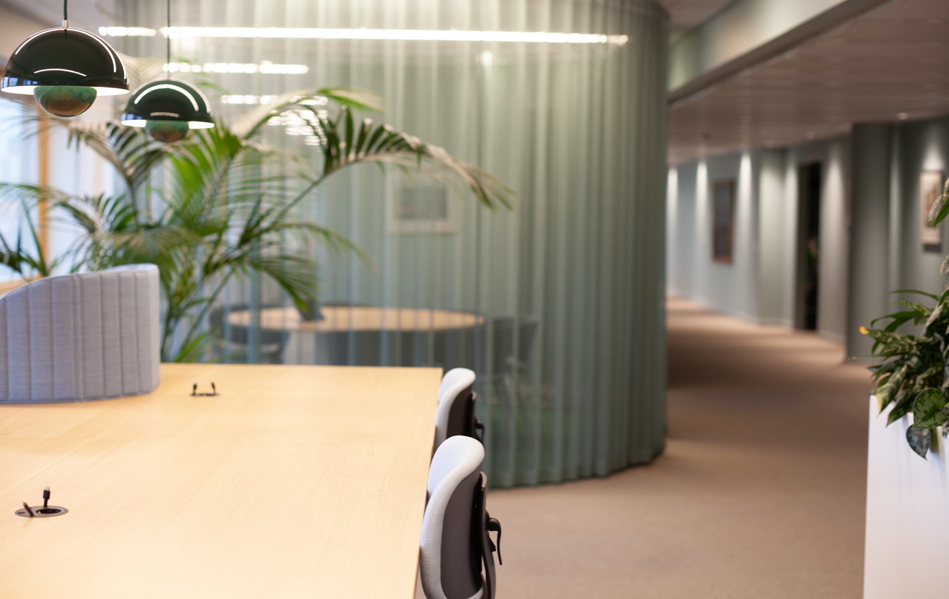 Den lägre delen av byggnaden är belägen kring en ljusgård, vilket ger ljusa och attraktiva lokaler i hela byggnaden. Kontorslösningarna som ursprungligen var dubbelkorridorsystem består idag av en blandad lösning av skilda kontorsrum och öppna kontorsytor med stor flexibilitet. I inredningen ingår vit marmor i gemensamma ytor, heltäckande mattor i kontorsytor och glaspartier av ask.