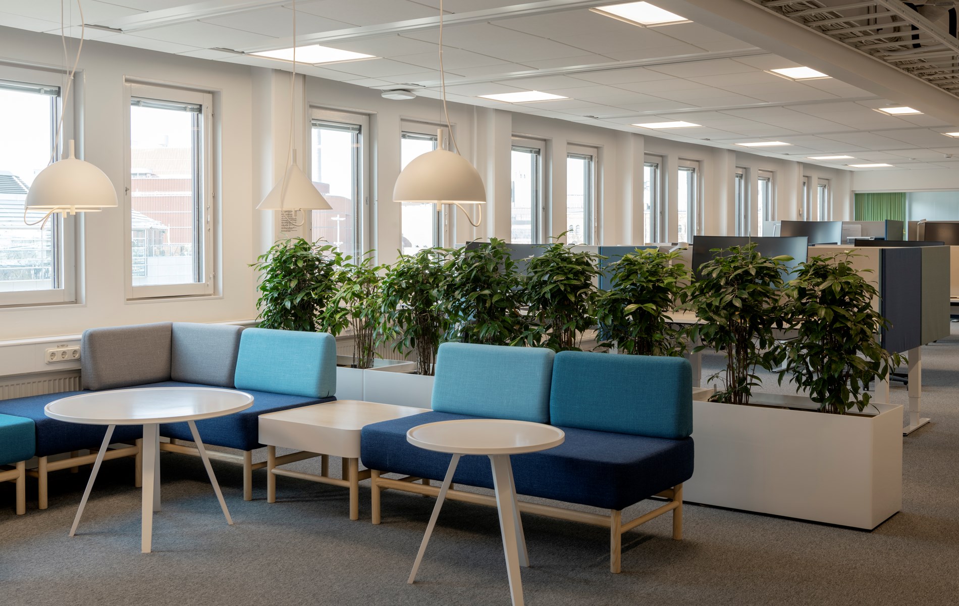 Kontorsmiljön invändigt är modern och ljus och motsvarar nybyggnadsstandard med industriparkett av ek. Kontorslösningarna som ursprungligen var dubbelkorridorsystem är idag till största delen öppna kontorsytor med stor flexibilitet.