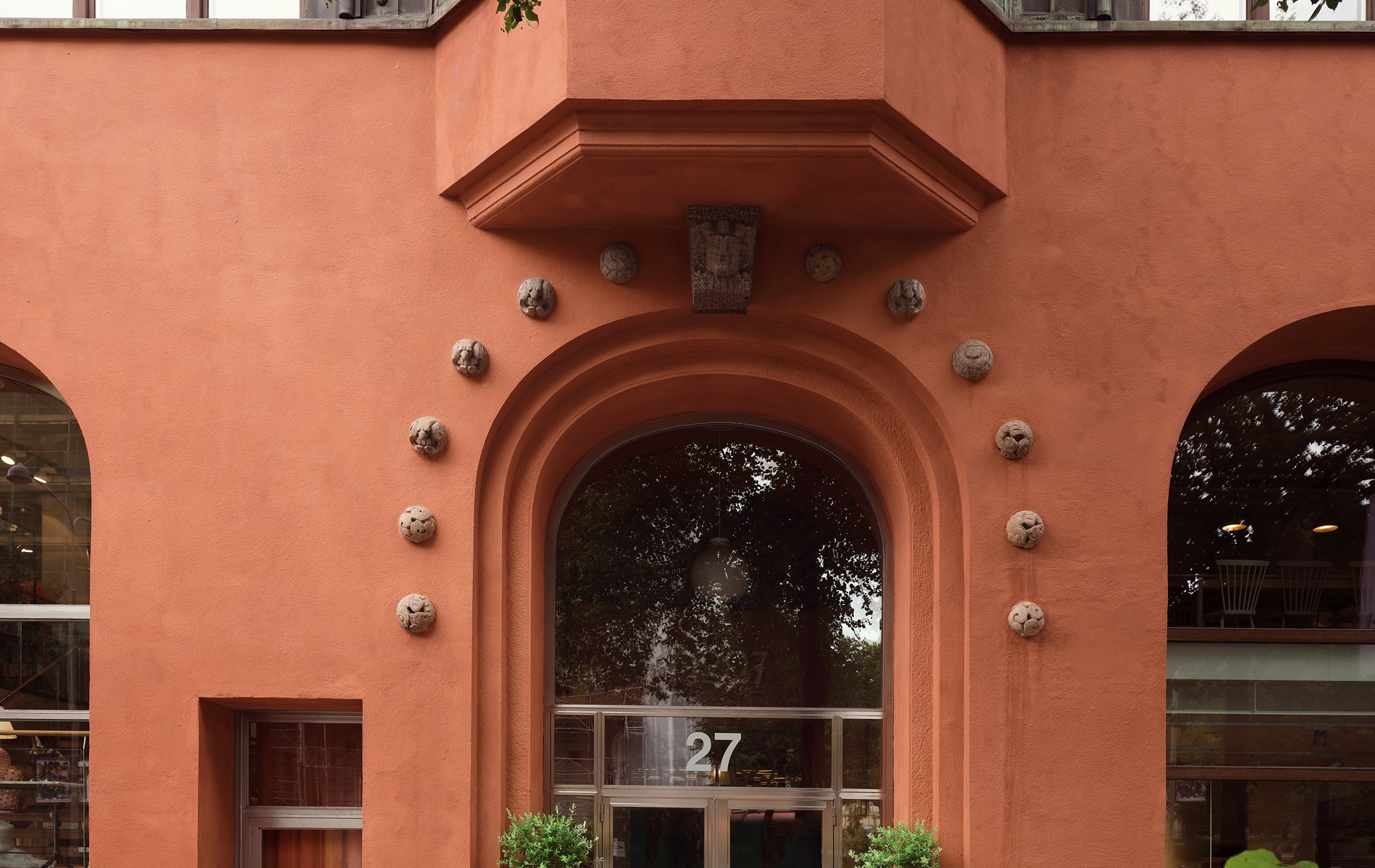 Fastighetens totala uthyrningsbara area är cirka 4 300 kvadratmeter och omfattar butiks- och kontorslokaler. Gatufasadens sockel är utförd i granit med hörnpelare designade av C W Fagerberg. Fasadbeklädnaden är i rosa sprutputs frånsett våningen en trappa upp som är klädd med reliefornamenterad kopparplåt. I entré och trapphus återfinns den ursprungliga Kolmårds- och vita marmorn. Byggnadens stil ansluter till främst nationalromantiken, men har även drag hämtade från jugend.